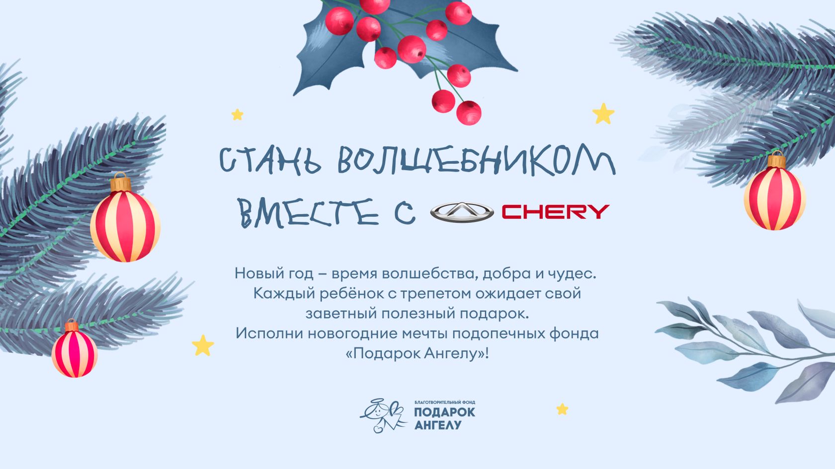 Дистрибьютор автомобилей CHERY в России предлагает присоединиться к проекту «Стань волшебником вместе с CHERY», исполнив новогодние мечты подопечных фонда «Подарок Ангелу».