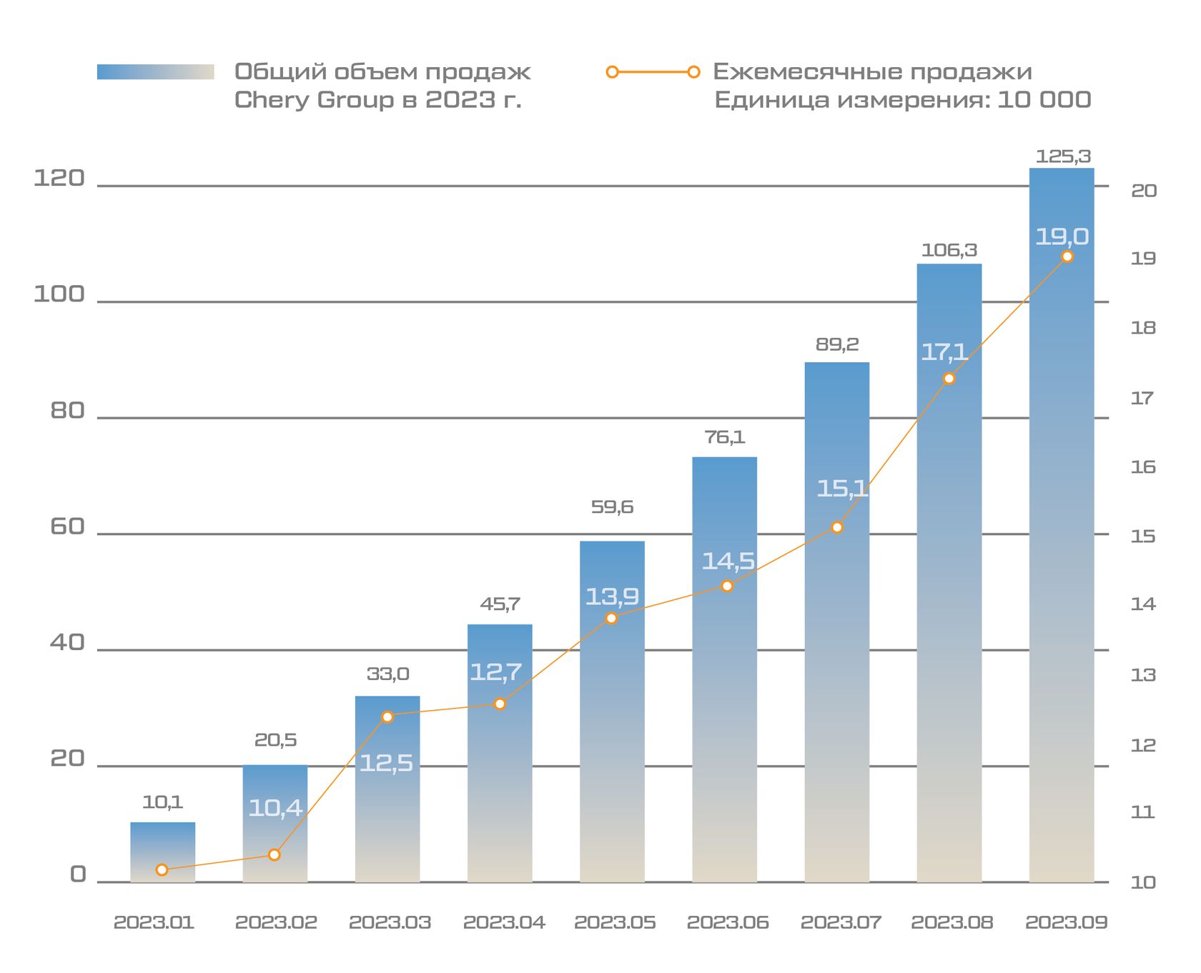 Мировые продажи Chery Group в сентябре составили 190 080 автомобилей, что на 30,7% больше, чем за аналогичный период прошлого года.