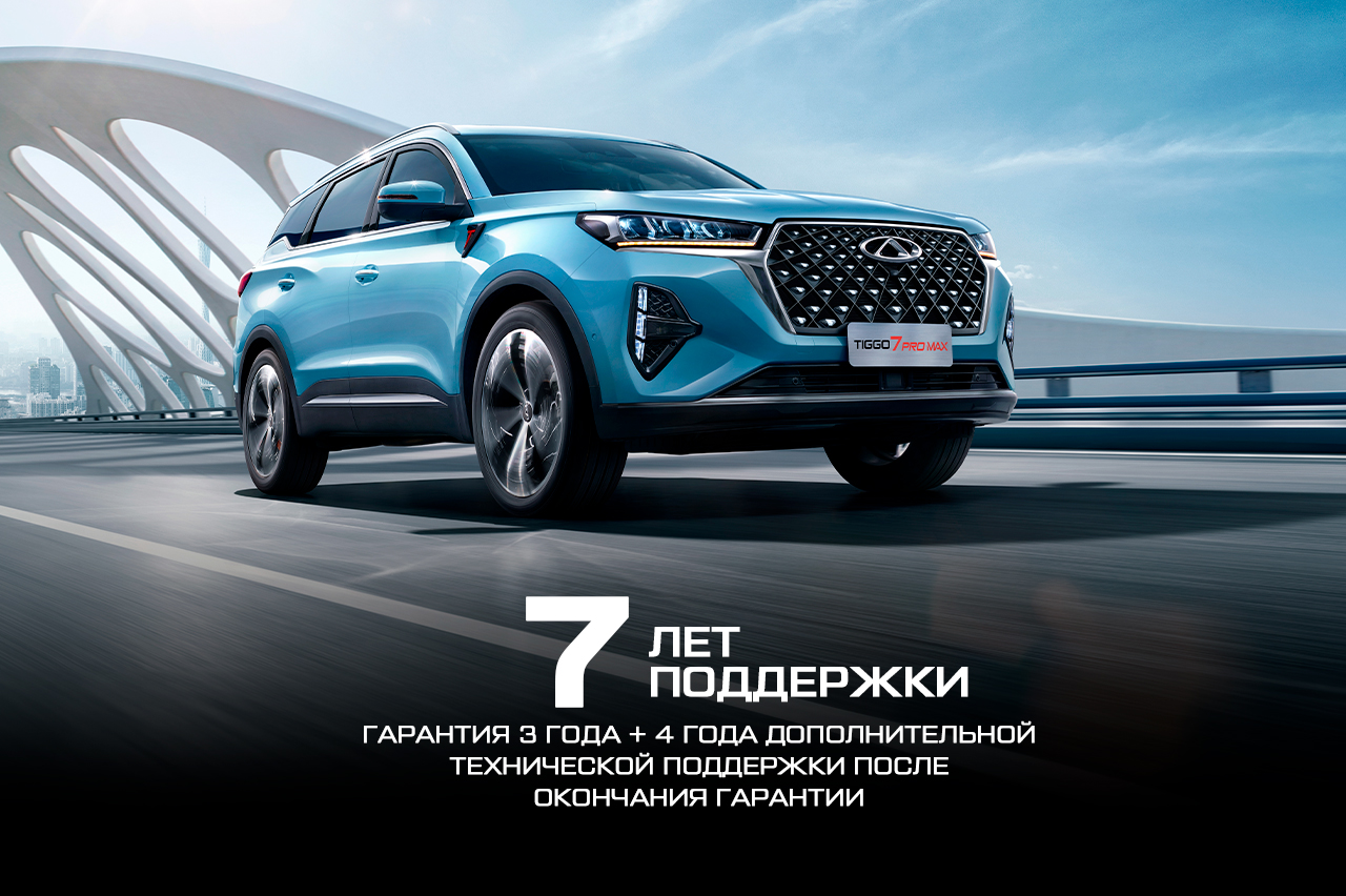 CHERY производит автомобили высокого качества. И для Вашей уверенности мы установили суммарный период технической поддержки 7 лет (3 года гарантии + 4 года дополнительной технической поддержки) или до 200 000 км (100 000 км гарантии + 100 000 км поддержки), в зависимости от того, что наступит раньше - для моделей CHERY TIGGO 4, TIGGO 4 PRO, TIGGO 7 PRO, TIGGO 7 PRO MAX, TIGGO 8, TIGGO 8 PRO, TIGGO 8 PRO MAX, ARRIZO 8).